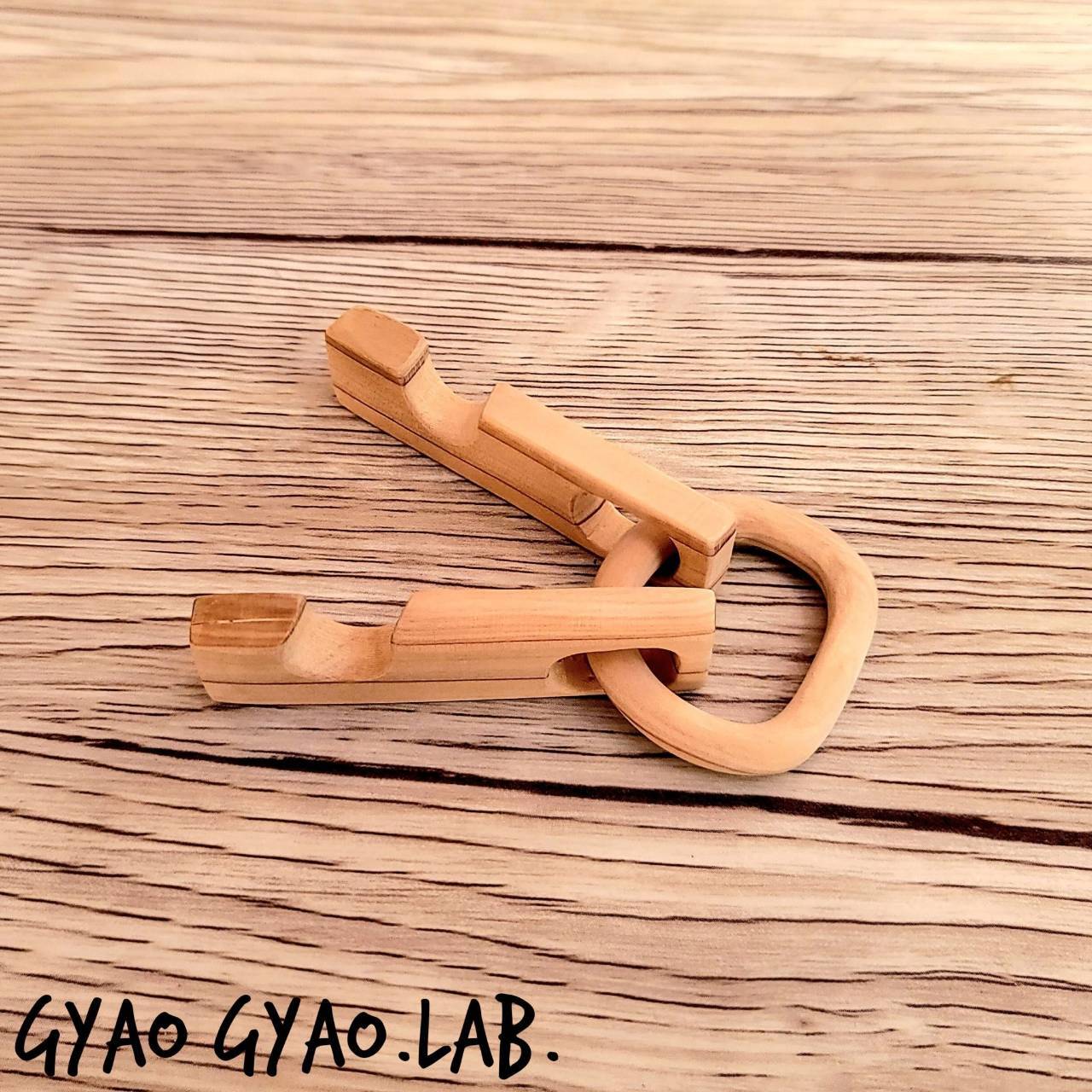 一見普通の木製のスマホスタンドですが、継ぎ目無しの削り出しで製作しています。一枚板から製作してますので、もちろんリングは外れません(^^)