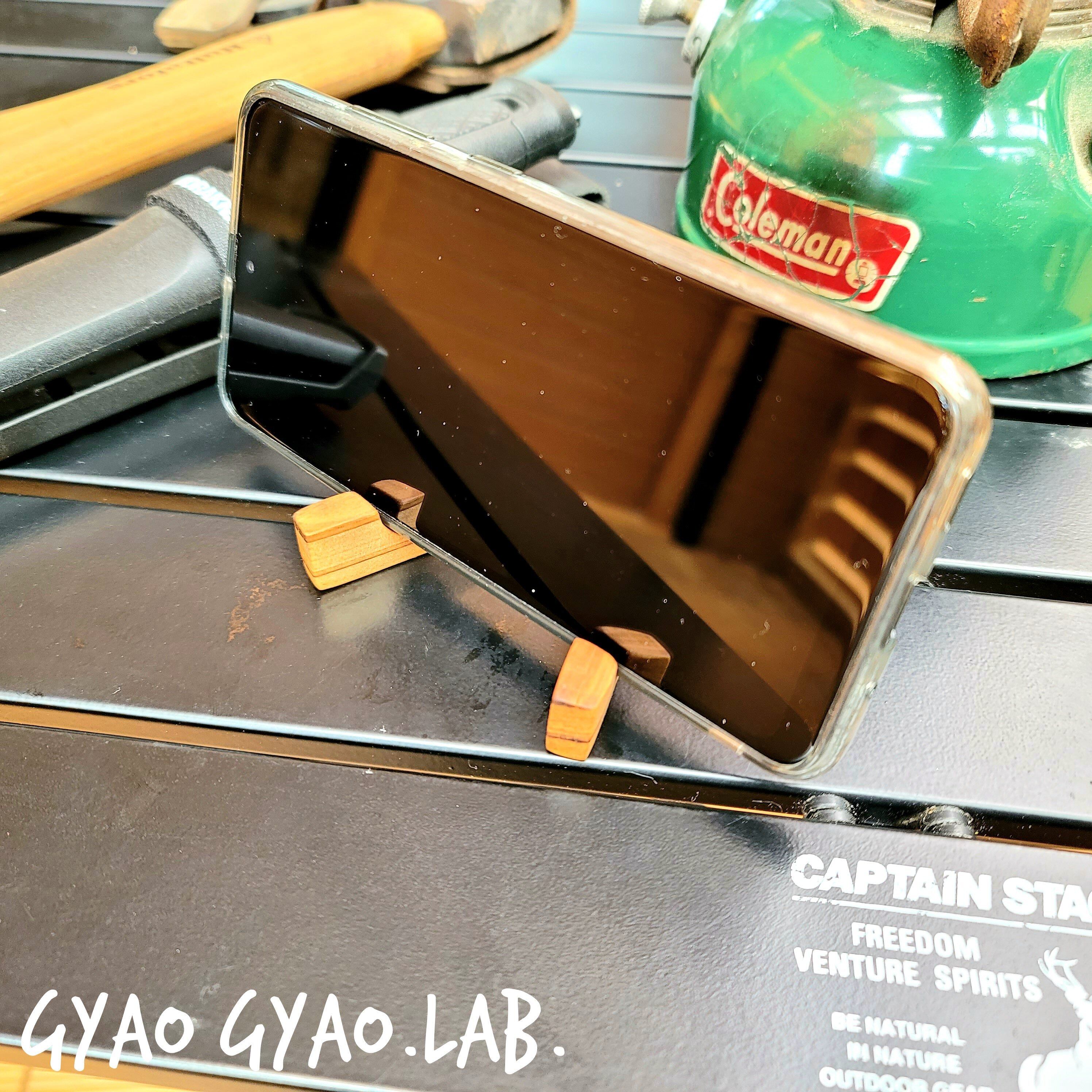 一見普通の木製のスマホスタンドですが、継ぎ目無しの削り出しで製作しています。一枚板から製作してますので、もちろんリングは外れません(^^)