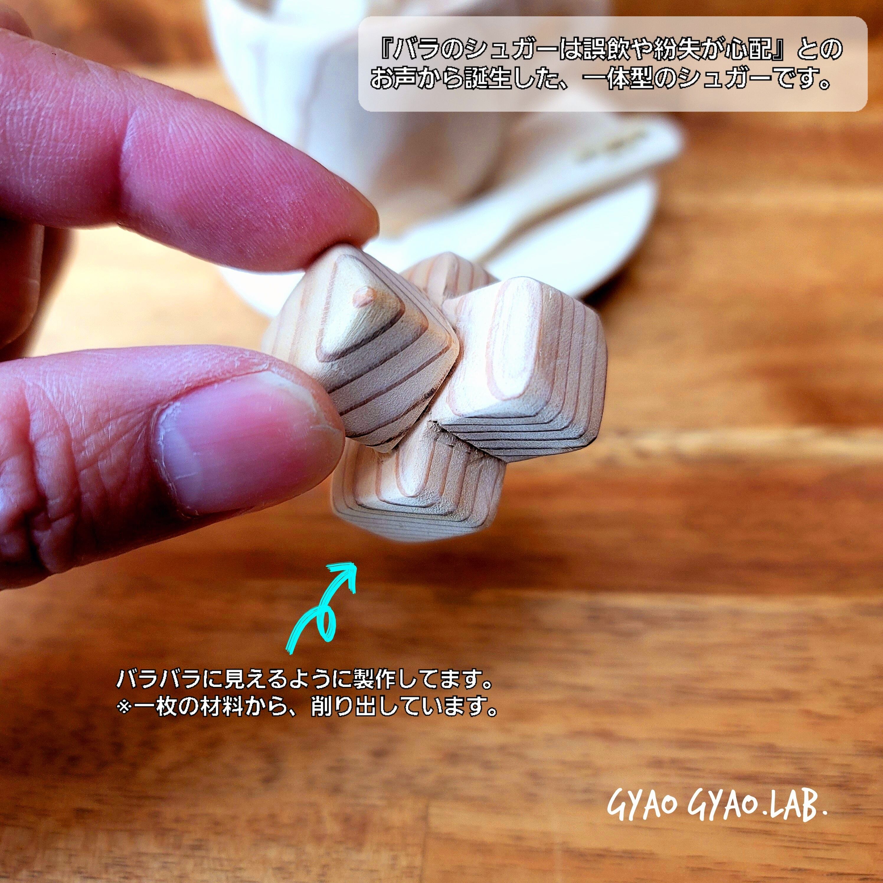 ※シュガー(一体)は小さなお子様でも安心して遊べるよう、一枚板から削り出しで出来ています。接着剤は使ってません。