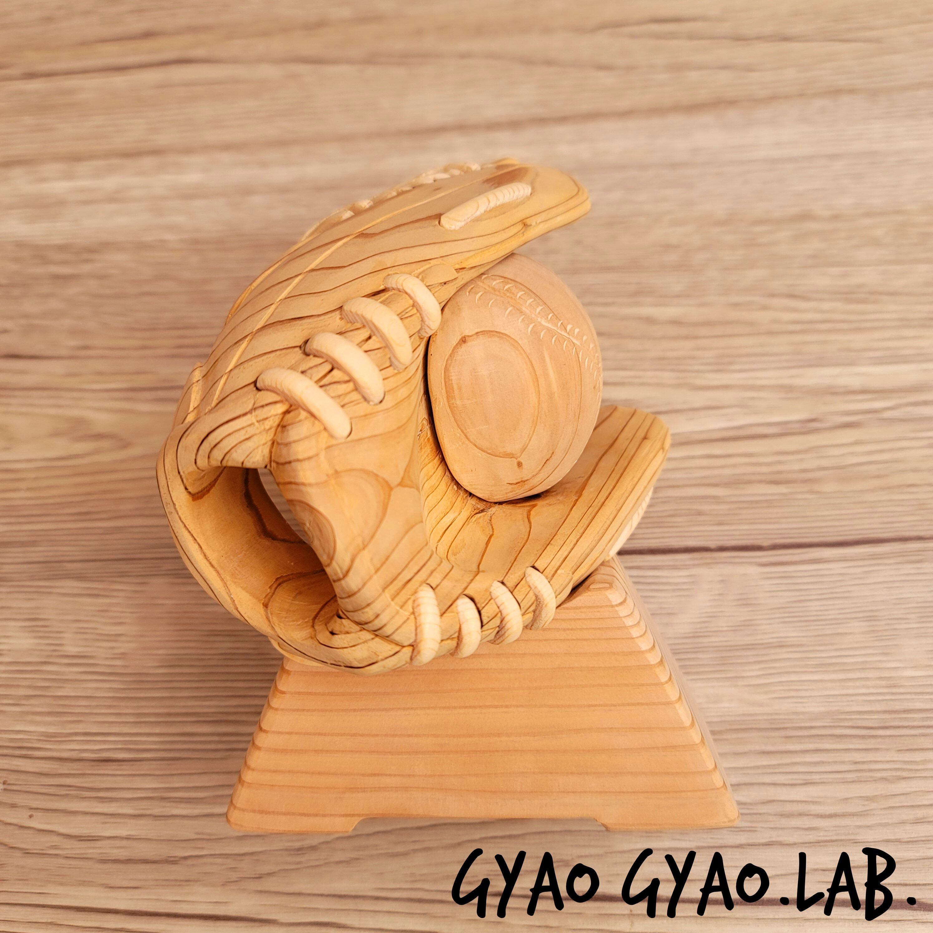 そんな依頼から誕生した、リアルで可愛らしい、野球グローブの木製トロフィーです。