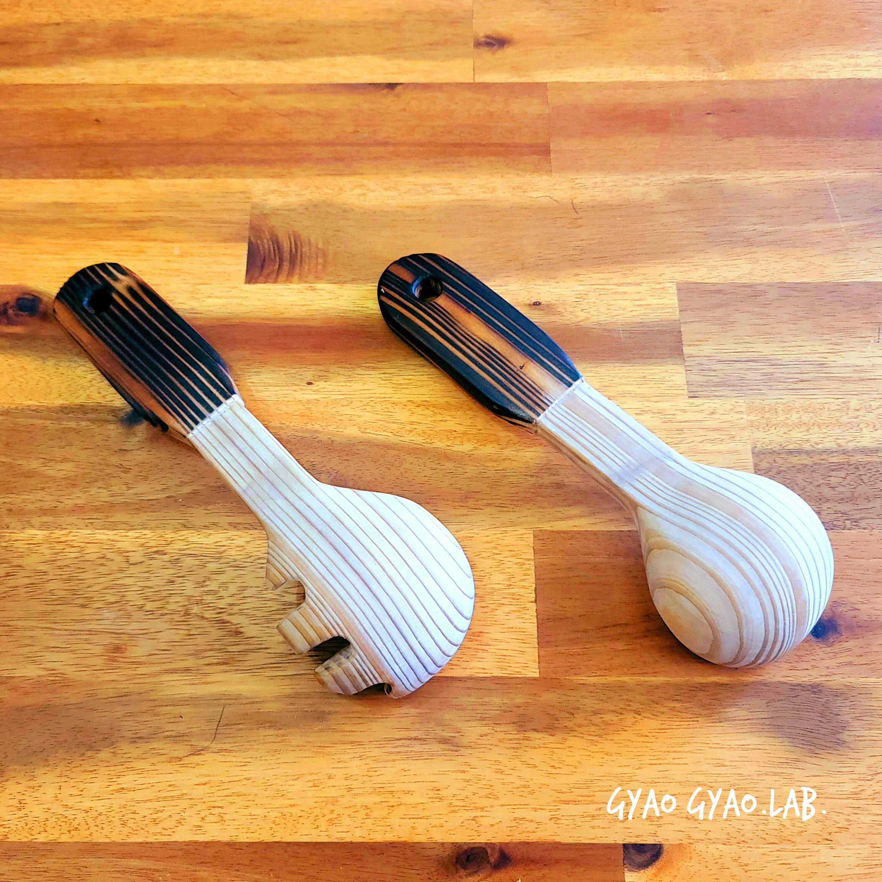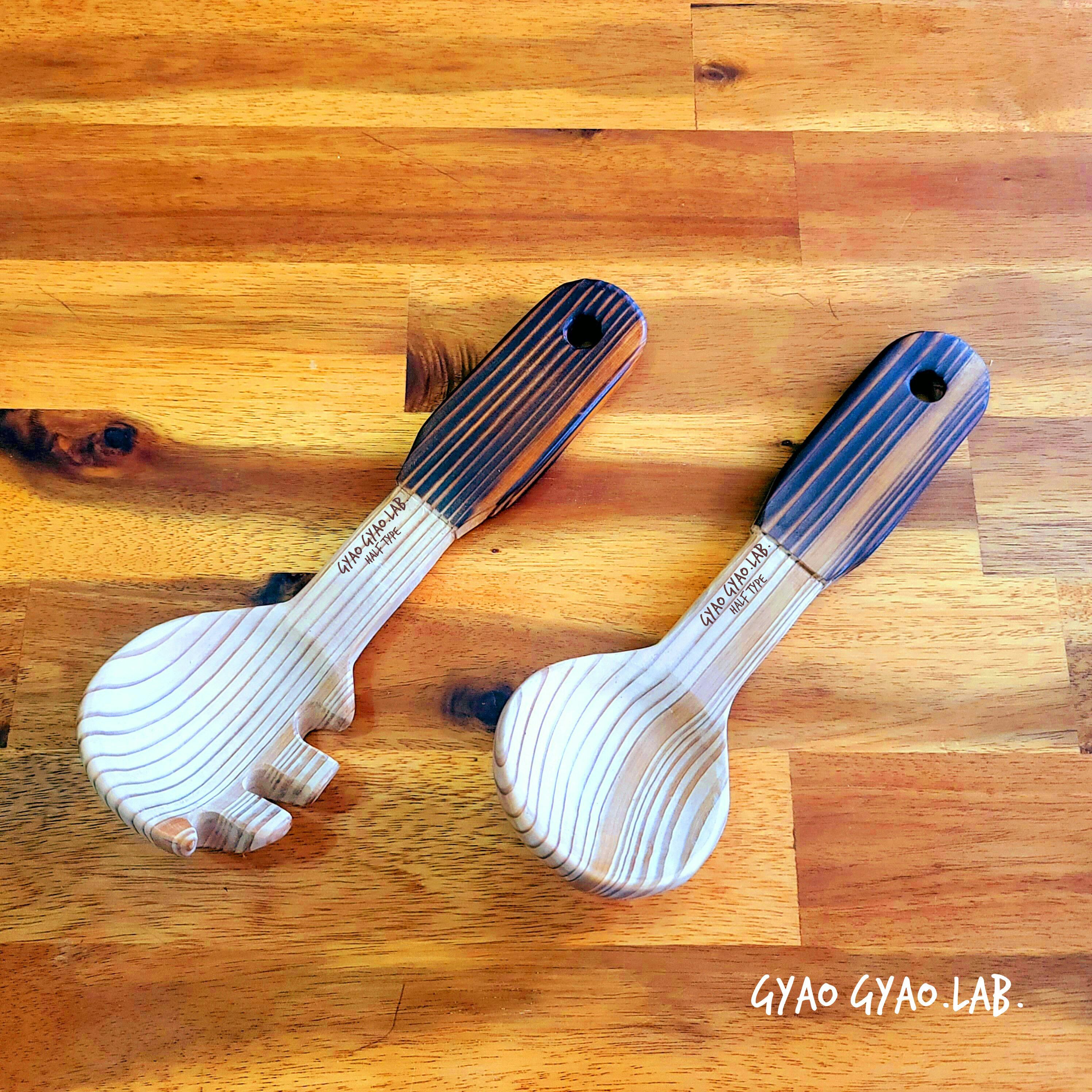 削り出しにて製作しており一体物ですので、細かな部品は無く、口に入れても問題無い様に持ち手意外の部分は無塗装となっていて、持ち手の部分は炙り加工+植物性油での塗装としています。
